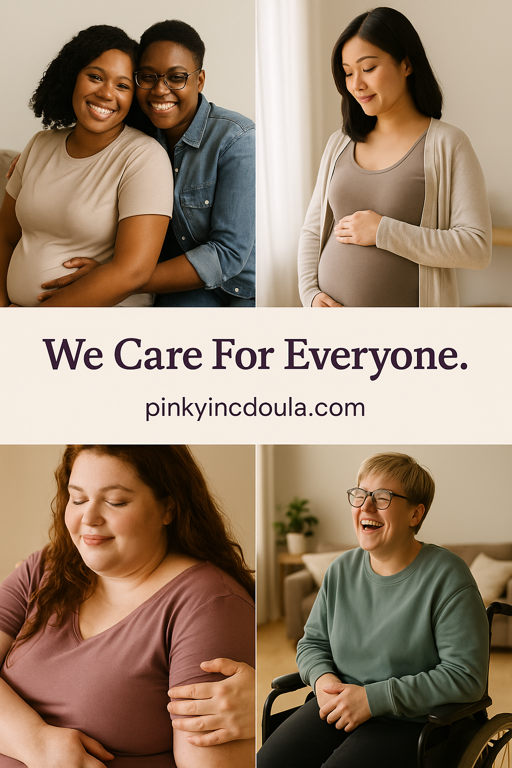 All care is inclusive and respectful at PinkyInc Doula, and we welcome families of all races, body sizes, genders, and gender indentities. Every family deserves compassionate, supportive care throughout pregnancy, birth, and postpartum.